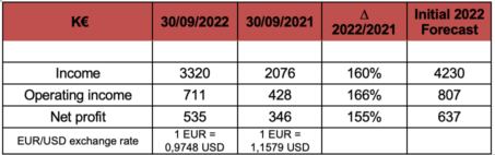 At the end of September, the company was already close to achieving the annual objectives described in the Information Document submitted to Euronext, listed above in the column “Initial 2022 forecast”.