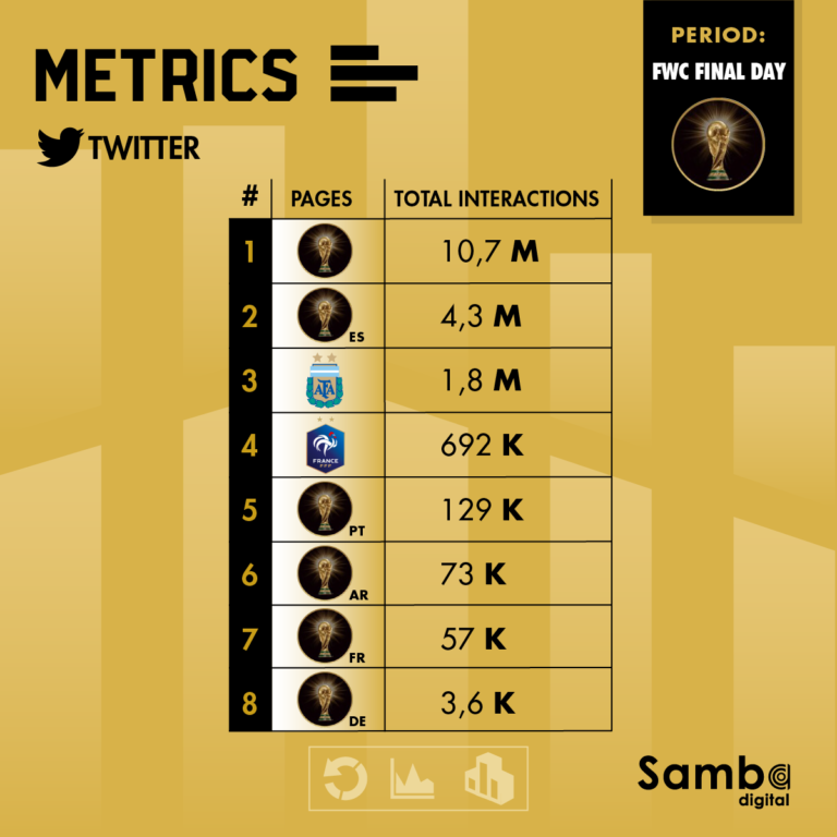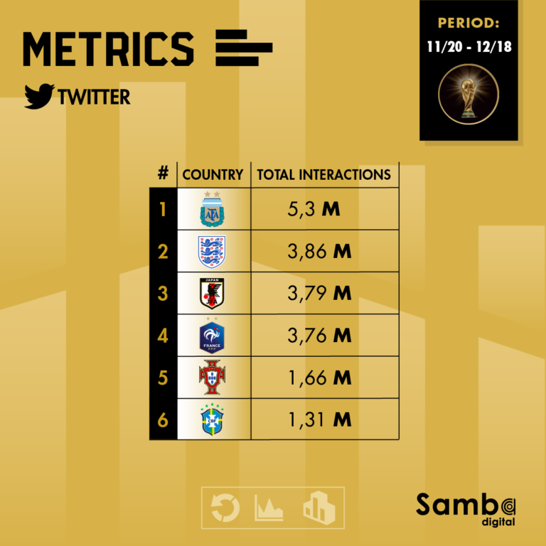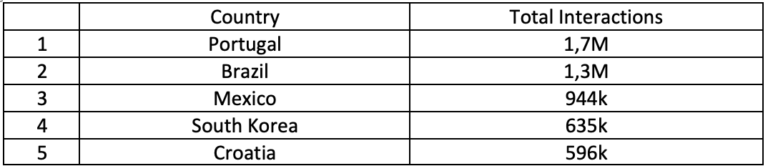 It is worth mentioning that Argentina added 1.8 million interactions with its third World Cup title and the performance on the day of the final match would already surpass national teams of the size of Portugal and Brazil.