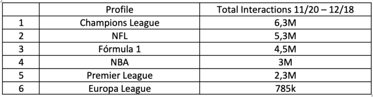 Returning to football, the six FIFA pages accumulated 2.6 million new followers across the world in these 28 days.