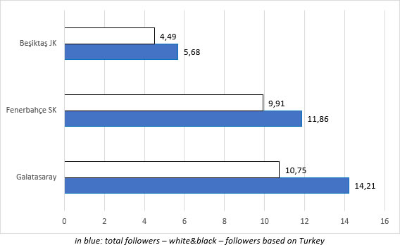 Of the three clubs, it is the one with the most followers around the world; Besiktas has a local following rate of 79%, and Fenerbahçe has 83.6%.