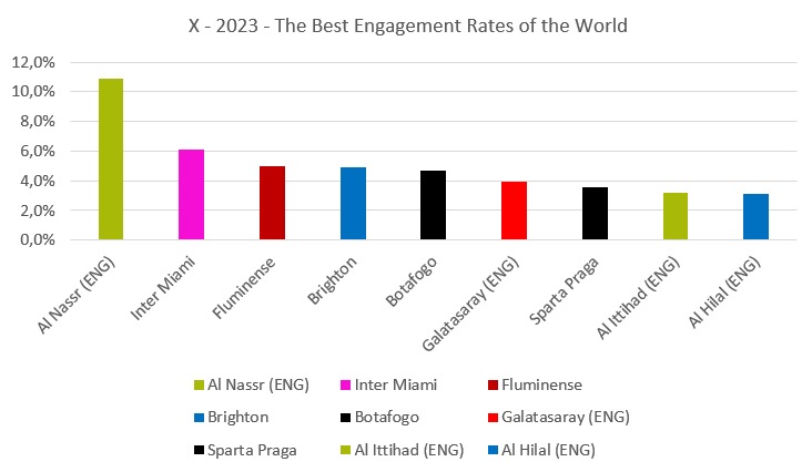 Just like on Instagram, where Fluminense leads the world engagement ranking, Tricolor’s Twitter presents a result that is just as expressive. With a 5% engagement rate, it is only behind two giant football brands: Cristiano Ronaldo and Lionel Messi, who recently won the Ballon d’Or again.