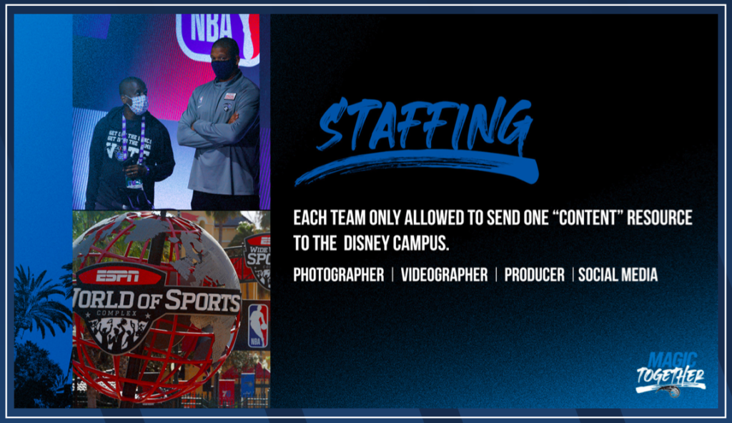 When details emerged from the NBA they found out that teams would only be allowed one person within the bubble for content capture. They needed to find someone who could do everything, a one-person content machine with skills in photography, video, production and social media! Fortunately for the Magic they had just the person for the job.