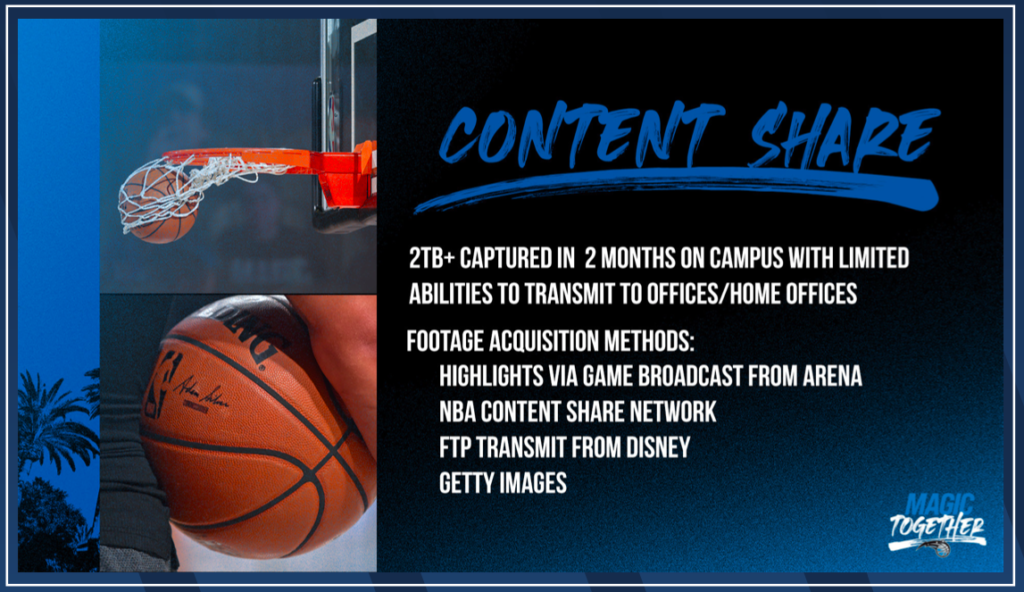 Another challenge was in regard to content sharing. With so much data being captured and then needing to be shared with the team away from the bubble, this presented a huge obstacle, one in which they leaned on the NBA to help them resolve.