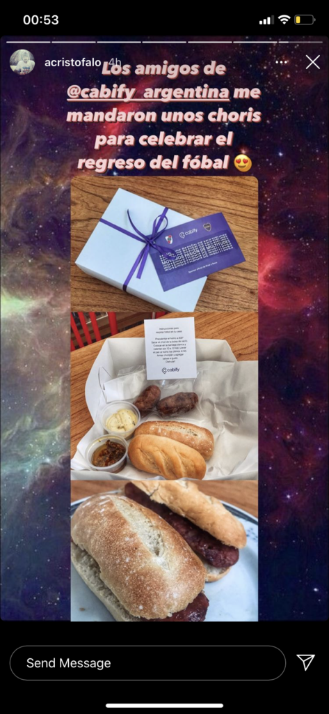 Cabify is now River Plate and Boca Juniors sponsor and to celebrate their comeback for domestic football they created a cool new commercial spot. They are also sending “choripan” (sausage sandwich, typical matchday food in Argentina) to influencers and journalists – Instagram