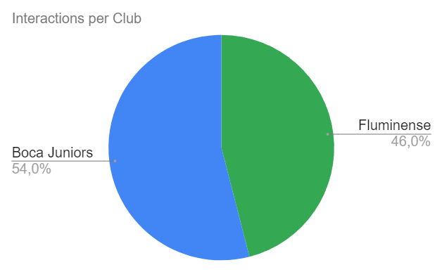 Together, the two clubs had 332,236,833 million interactions on their official Instagram pages until October 24th – 10 days before the Copa Libertadores de América final. Boca Juniors’ advantage is slight: 179.4M, compared to Fluminense’s 152.8M so far.