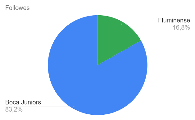 To begin with, we need to consider the size of the two clubs’ follower bases. With 9 million followers on Instagram, Boca Juniors has 4.95 times more followers than Fluminense, which has 1.82 million. There are almost 11 million people following the two clubs:
