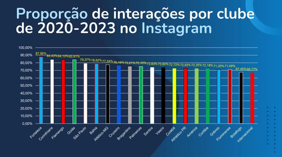To get an idea of the size of this achievement, across the last 45 weeks, Fortaleza has been among the 10 teams with the most interactions on Instagram 26 times, ahead of clubs such as Grêmio, Internacional, Botafogo – the current leader of the Brazilian Serie A – and Atletico Paranaense, which, in turn, only featured once in the Top 10, despite having been a finalist of the 2022 Copa Libertadores and the winner of the 2021 Copa do Brasil.