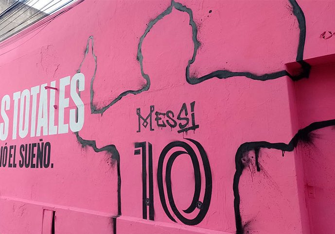 This visual style was then further built upon with the painting of a mural in Messi’s home neighborhood of Rosario, Buenos Aires. Using the same street art style as in the video, artist Dimas Nota created a mural in collaboration with the club and Adidas, the kit sponsor of both Inter Miami CF and the Argentine national team. The mural is centered around the phrase “Gracias Totales” which is a famous quote by Gustavo Cerati, from the band Soda Stereo.