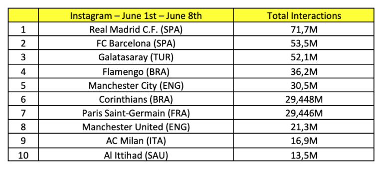 These signings guarantee Saudi Arabia’s success in its goal of attracting the world’s attention. In comparison with clubs across the globe in the first eight days of June, Al Ittihad rank tenth in terms of most interactions on Instagram, the social media platform with the highest number of interactions in the universe of football clubs.