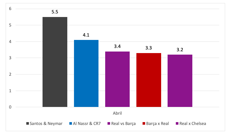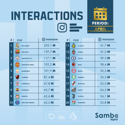 That post, by itself, represented more than 20% of the total interactions that Santos had on Instagram in April, a month in which the team ranked 18th among the main clubs in the world, a whopping 22.17% of the club’s total interactions.