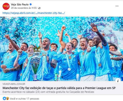 Presented by Etihad Airways, the 4-in-a-row Trophy Tour promoted by Manchester City arrived in Brazil and enlisted Samba Digital’s operational support in organizing services related to Public Relations.