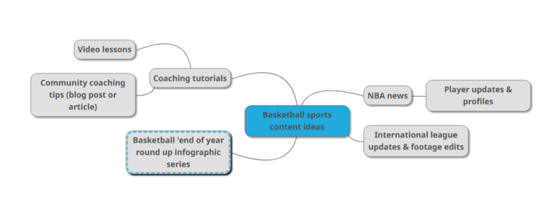 Once you’ve gathered a pretty solid list of subject matter, you can use brainstorming or mind mapping tools like MindMup to drill down a little deeper and mine for winning sports content ideas.