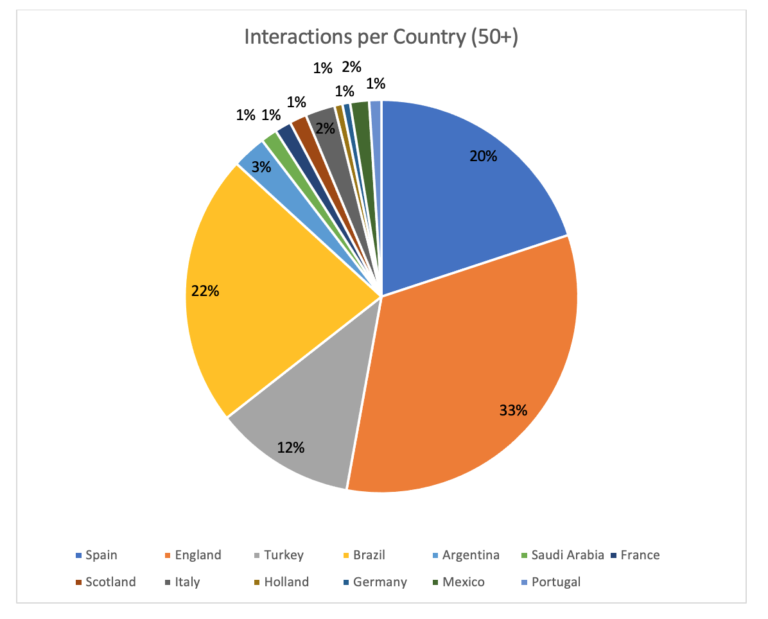 But, when we analyze the volume of interaction that clubs in these countries provided throughout 2022, the graph’s makeup changes considerably: