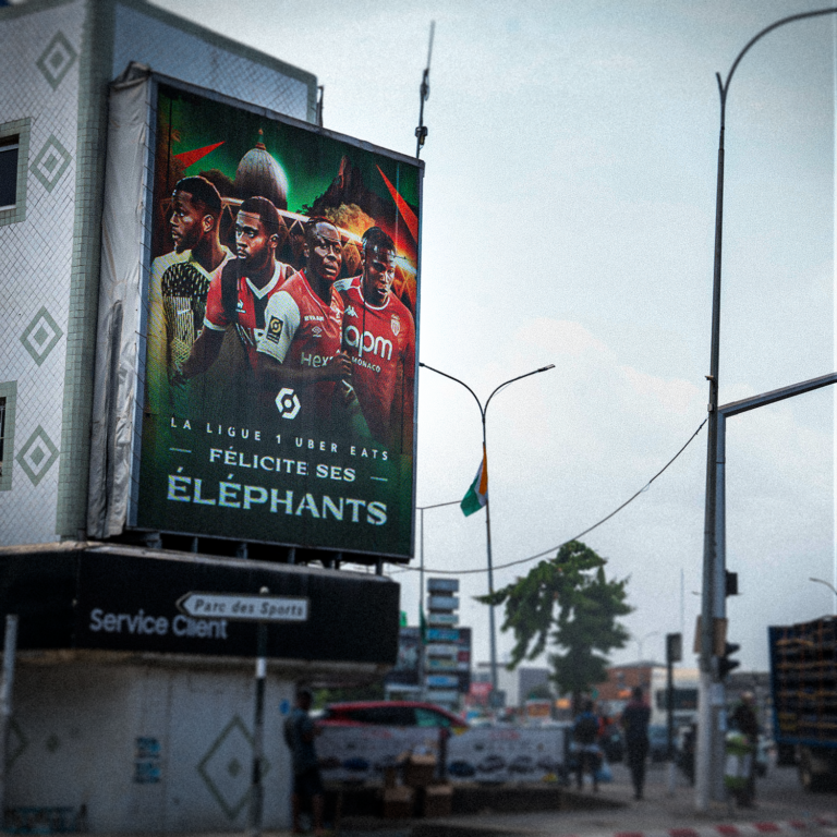 Dans le même temps, Samba Digital a proposé à la Ligue de Football Professionnel de saluer la victoire finale de la Cote d’Ivoire à travers une campagne d’affichage dans les rues d’Abidjan. L’affiche félicitant les « Éléphants » pour leur conquête du trophée rassemble ainsi le gardien Yahia Fofana (Angers), les attaquants Jérémie Boga (Nice) et Oumar Siakité (Reims), ainsi que le défenseur Wilfried Singo (Monaco, de g. à dr. sur les photos des affiches)