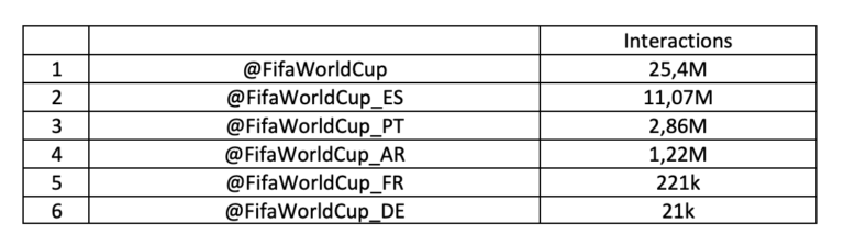 “FIFA, with its strategy of having pages in six different languages, is seeking to reach the largest number of people using the World Cup as a topic. As expected, the account in English has the highest concentration of interactions and growth, not only because it is the first and oldest account, but because its content is in the universal language of today,” said Neto.
