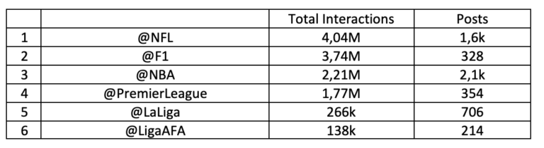 In a quick comparison in the same period (November 20th – December 12th), the NFL had 10% of the total interactions that FIFA accumulated: