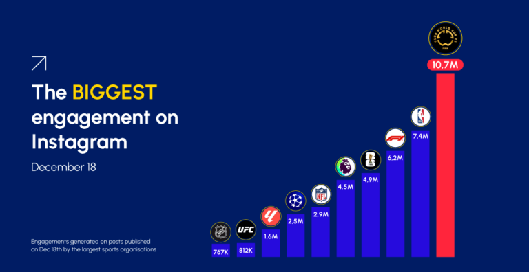 Among the top 10 posts with the highest engagement, all feature collaborations with @FIFAWorldCup. Only one, showcasing the Men’s and Women’s World Cup trophies, also includes a collaboration with @FIFAWomensWorldCup. Notably, that post garnered an impressive 698,000 interactions.