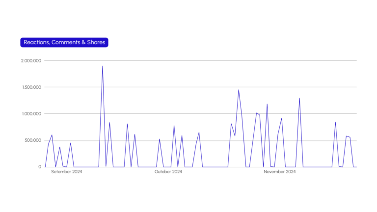 The growing follower base naturally translates into better overall engagement performance. As shown in the chart below, Franco Colapinto surpassed the 1 million engagement mark on Instagram five times between September and the end of November.