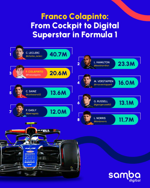 Comparatively, Franco Colapinto’s digital growth surpasses the top drivers of the 2024 season.
