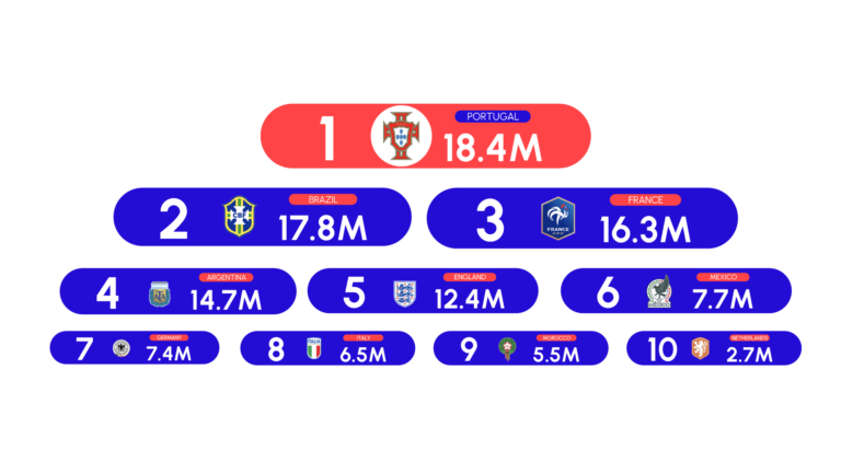 In total, the Portuguese profile accumulated more than 158 million interactions in just over a thousand posts. By comparison, France, who played at home in Paris 2024 and finished as silver medalists, accumulated 119.4 million interactions.
