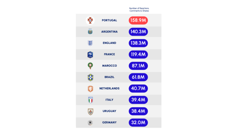Among the top 10 posts with the most engagements among all teams, Portugal holds 50% of them. All of them, as already mentioned, have Cristiano Ronaldo in the picture.