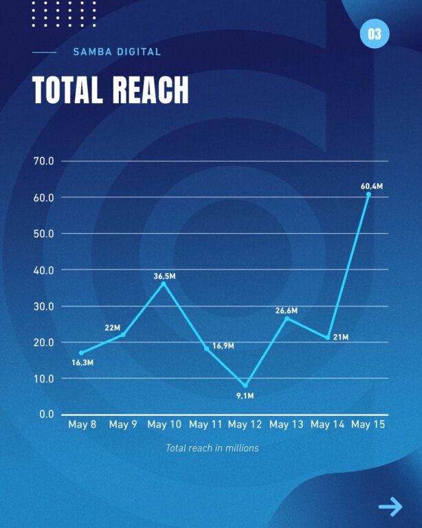 Below is a graph showing the reach of all franchises combined on X.com last week, demonstrating the increase in performance. As a result, more people are impacted and more brands are satisfied with the indirect connections created.