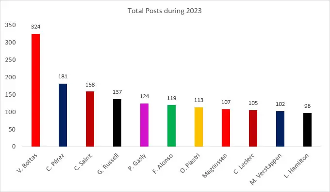 En 2023 seulement, Hamilton montre une croissance de 14% de ses followers, bien qu’il n’ait pas remporté une seule course cette saison. Au total, il y a 4,4 millions de nouveaux followers. Cela le placerait déjà comme le 11e pilote avec le plus de followers, devant son ancien coéquipier Valteri Bottas, qui a 3,9 millions de followers.