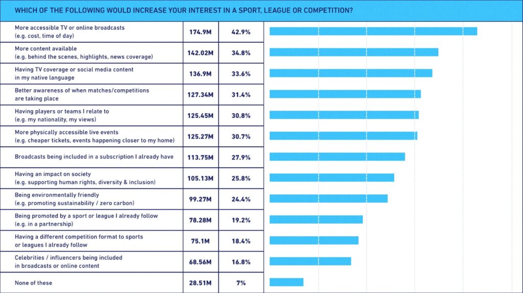According to GWI Insights, a public research company, 31% of global UEFA Champions League fans says that physical events related to a competition would boost their interest in the competition, provided these events happen near their residences.