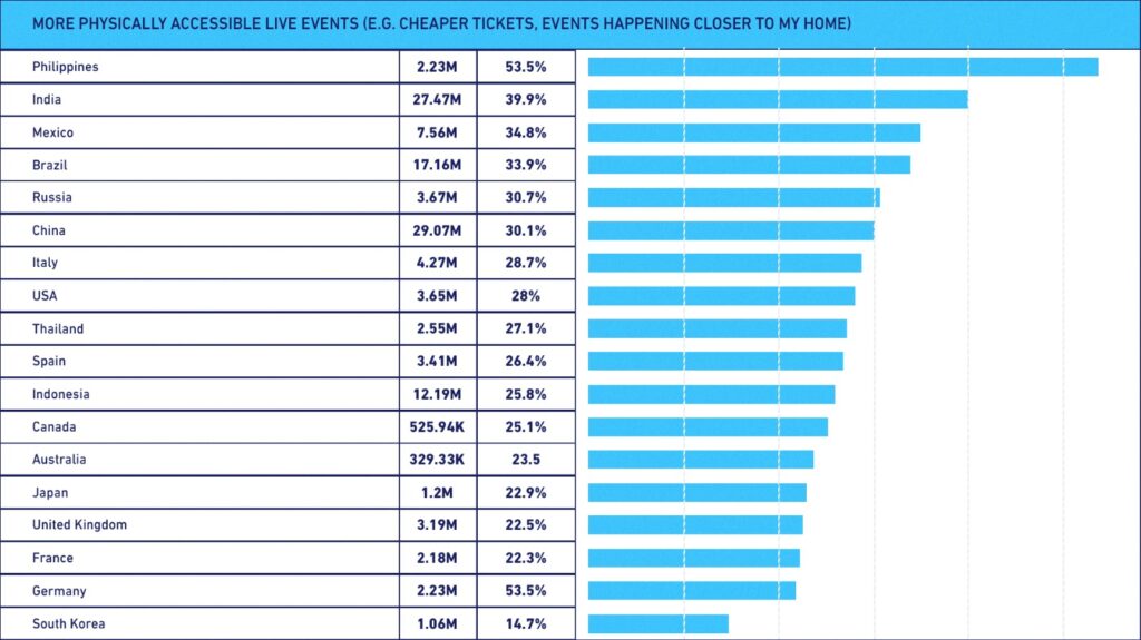 This action ranks fifth among fans’ interests related to the competition. However, it is the first that directly addresses the relationship between people and the competition in a physical form. All previous requests focused on more accessible broadcasts or connected content, whether through language conversion to the native language or more original content that could eventually be produced.