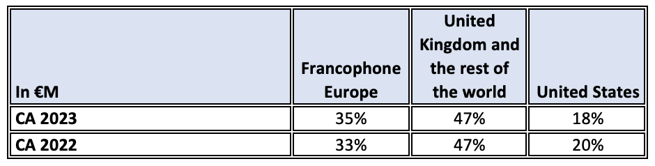 In 2023, Samba Digital successfully deployed its offerings globally, perfectly meeting the challenges of digital sports marketing in all regions of the world. The geographical distribution remains roughly the same as in 2022, with slight growth in Francophone Europe.