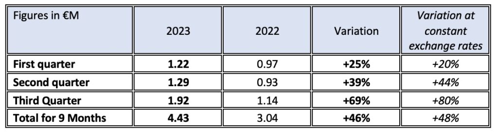 Samba Digital achieved a turnover of €4,431,000 over the first nine months of the year, a sharp increase of 46% compared to the same period of the previous financial year. The turnover for the third quarter of 2023 represents the 22nd consecutive quarter of uninterrupted growth in activity since the creation of the company.