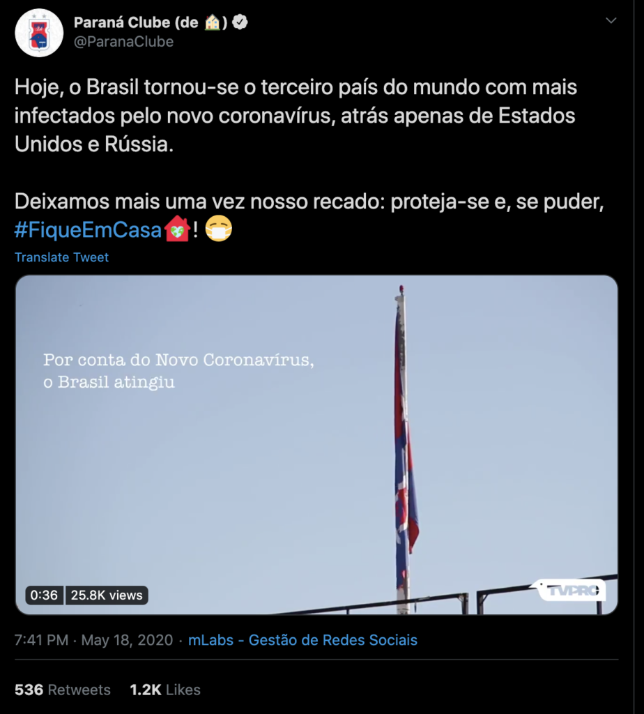 In Brazil, a video was made to show that the number of deaths in the country had surpassed the number of people that would fit in Parana’s stadium: The Estádio Vila Capanema. It was a sad but important message to stay home and understand the importance of the issue as Brazil has one of the largest numbers of COVID-19 cases in the world.