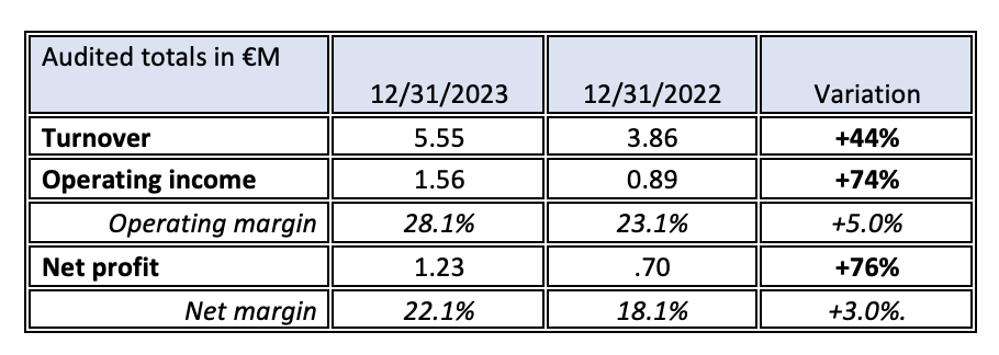 In the first quarter of 2024, Samba Digital’s activity grew with a 52% increase in revenue to €1.87M, confirming the previous forecast of an annual revenue for 2024 of around €10M, based on an even €/$ exchange.